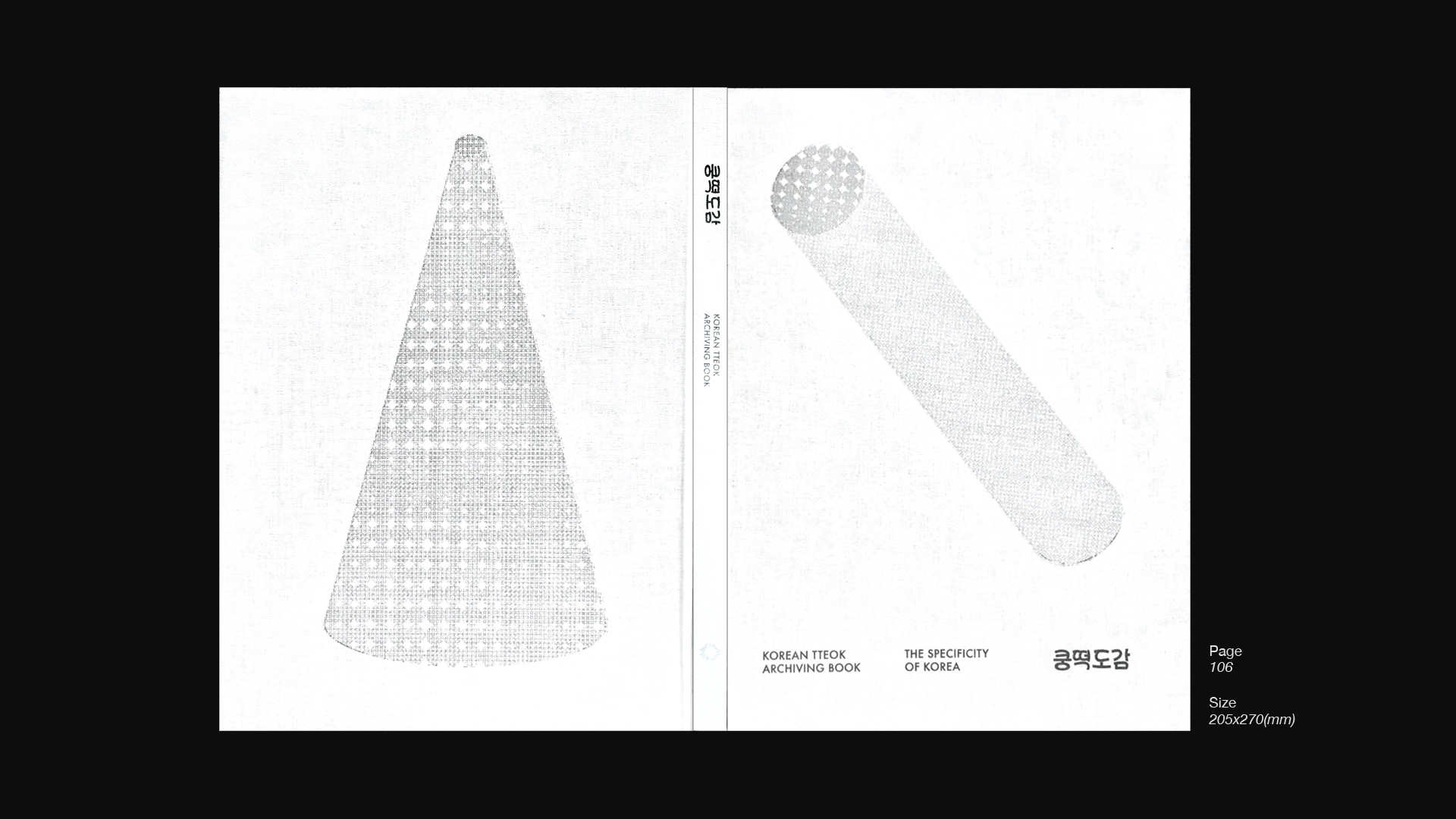 The book was created by visualizing 50 rice cakes that were classified based on the values of the Republic of Korea among the rice cakes. Although the rice cakes in the picture book are divided into a basic form and a practical form, the basic form of the rice cakes is the original form of the rice cakes, and the practical form is a virtual form evolved from the conventional rice cakes. This form can also be applied to packages. Hope to discover new specificity of Korea through various types of korean tteok book.